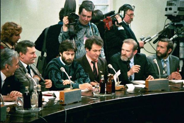 04.1989 WARSZAWA OKRAGLY STOL N/Z TADEUSZ MAZOWIECKI, LECH WALESA, WLADYSLAW FRASYNIUK, ZBIGNIEW BUJAK, BRONISLAW GEREMEK